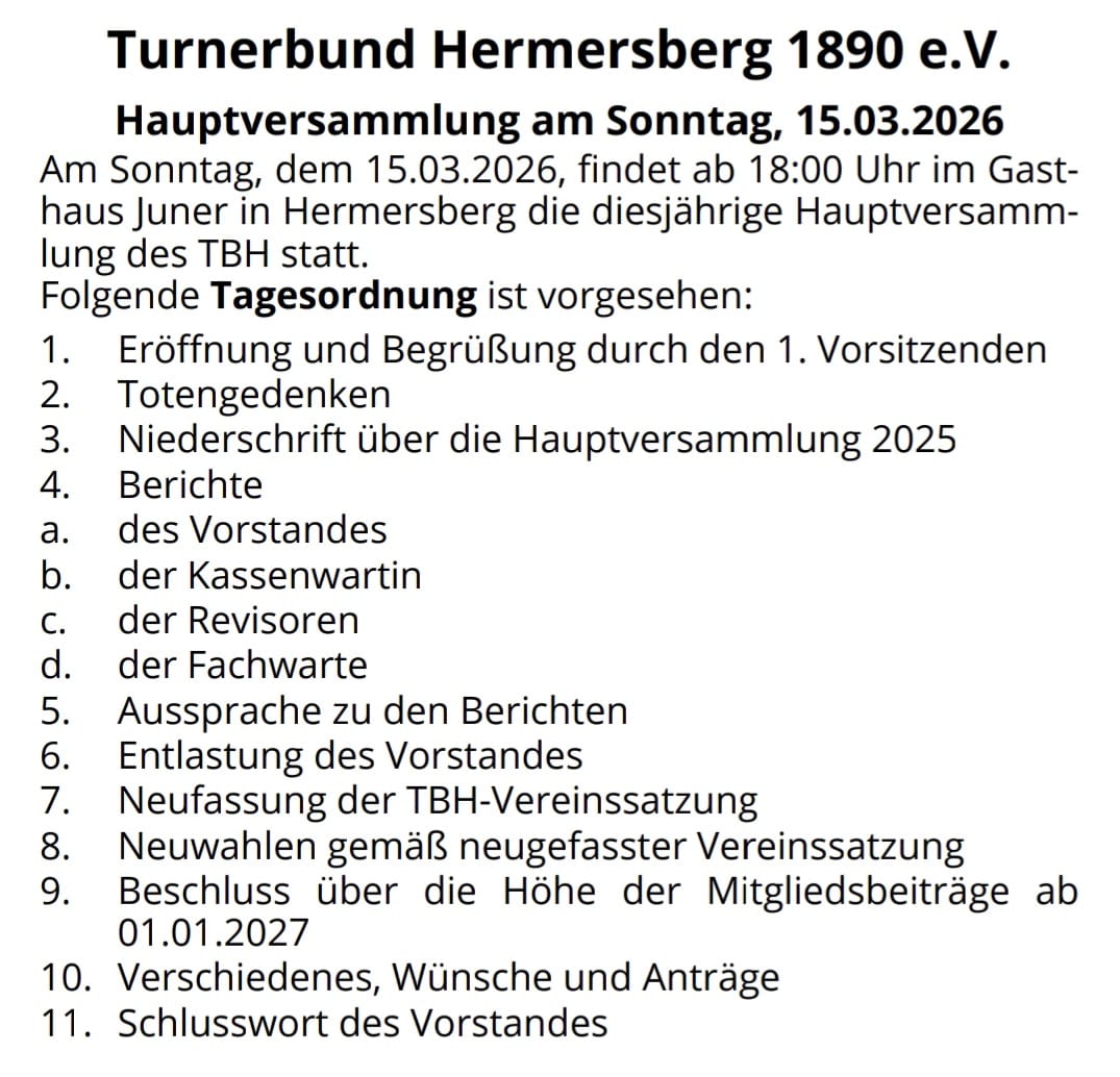 Einladung zur Hauptversammlung des Turnerbund Hermersberg