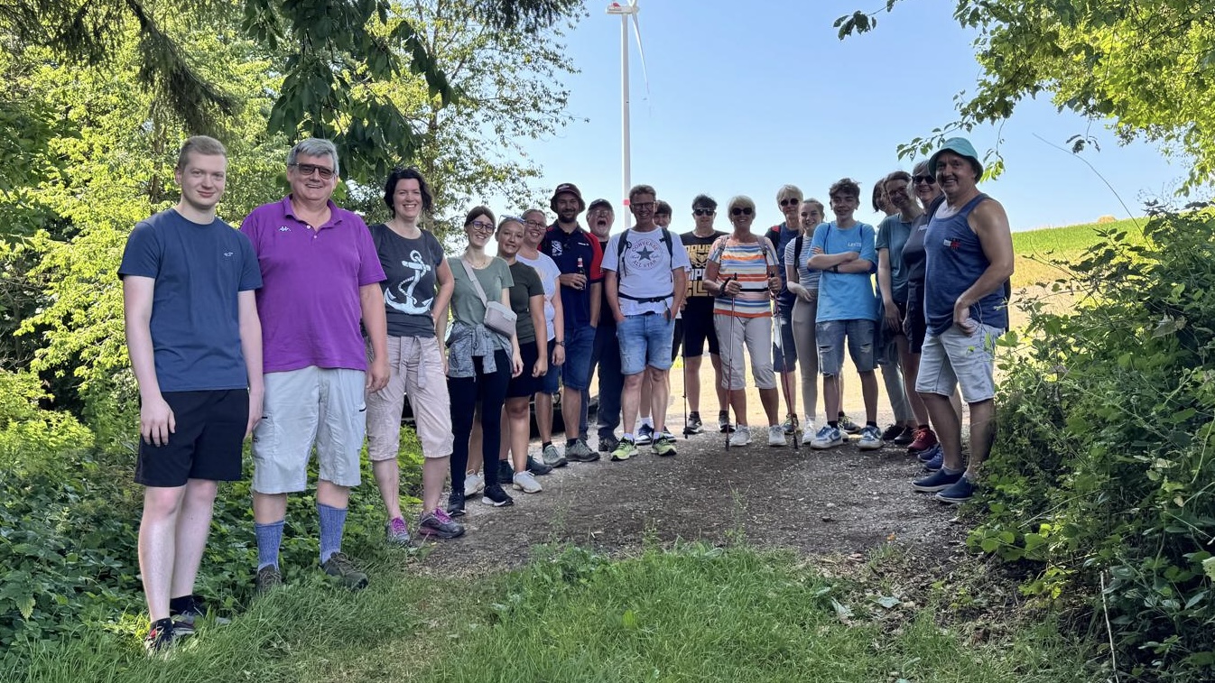 Rund 30 Mitglieder im Alter von 6 bis 66 Jahren nutzen den Sonntag für einen gemeinsamen Wandertag mit anschließendem Grillen. Ausgangspunkt ist die Moosalbhalle, von wo aus sich die Wandergruppe auf einen 7,5 Kilometer langen Rundweg begibt.