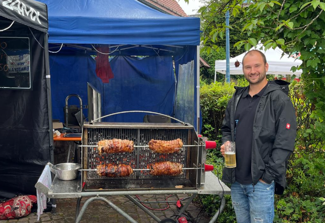 Rollbraten vom Grill, ein Helles und ein Prinz-Schnaps zum Abschluss