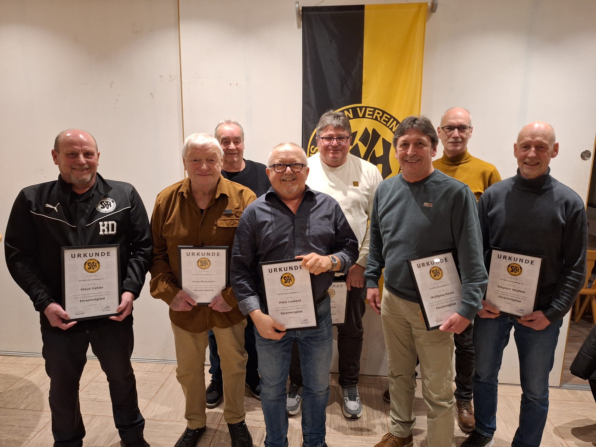Im Anschluss an die Jahreshauptversammlung wurden 9 langjährige Mitglieder, die mit ihrem außergewöhnlichen Engagement maßgeblich an der positiven Entwicklung mitwirkten, zu Ehrenmitgliedern des Vereins ernannt: Klaus Dahler, Alois Demmere, Rudi Heinz, Peter Lenhard, Kurt Silichner, Wolfgang Hauck, Volker Gries, Sigbert Neufeld, Volker Theis. Der Verein gratuliert herzlich und dankt allen Mitgliedern, Ehrenamtlichen und Unterstützern, die sich aktiv für den SV Hermersberg einsetzen.